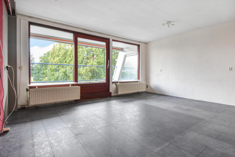 Aan de achterzijde beschikt de woonkamer over openslaande deuren naar een groot dakterras van circa 10m², welke eventueel ook bij de woonkamer kan worden getrokken.