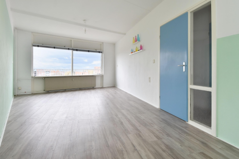 Aan de achterzijde beschikt de woonkamer over openslaande deuren naar een groot dakterras van circa 10m², welke eventueel ook bij de woonkamer kan worden getrokken.
